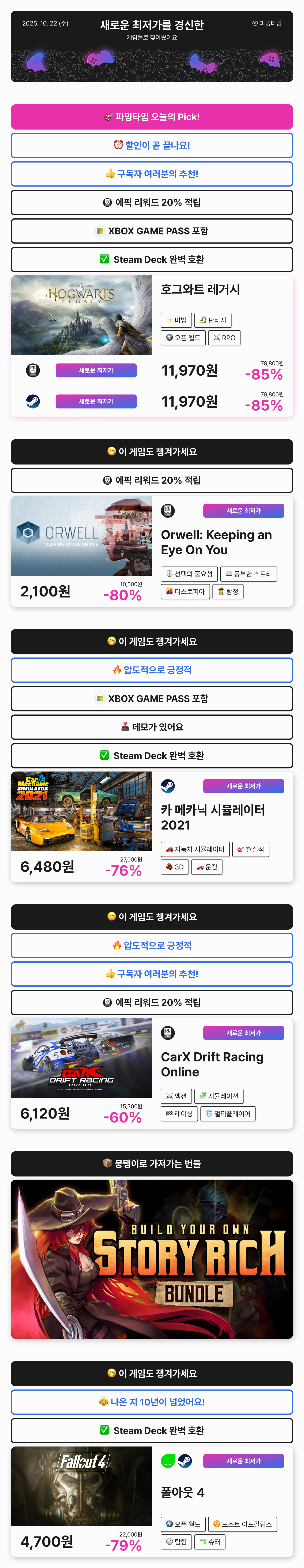 ๊ธฐ๋ฌํ ๋์ ์์์ ์ถ๊ณผ ๋ง๊ฐ์ ๊ฒฝ๊ณ๋ฅผ ํค๋งค๋ Endless Monday: Dreams and Deadlines ๐ฐ๏ธ ๋ก๋ด๊ณผ ์ธ๊ฐ์ ๊ด๊ณ๋ฅผ ์ฒ ํ์ ์ผ๋ก ํ์ด๋ธ ์ด๋๋ฒค์ฒ BROK the InvestiGator ๐ ์ฌ๋๊ณผ ์์ค, ๊ทธ๋ฆฌ๊ณ ๊ธฐ์ต์ ๋๋์๋ณด๋ To the Moon ์ธ์ Just a Beach Episode ๐ ๋ชฐ๋ฝํ ์ค์ธ ๊ธฐ์ฌ๋ก ์ด์๋จ๋ ์ํนํ ์์ฌ Heads Will Roll: Reforged โ๏ธ ๋ฑ๋ฑ ๊ฐ์ , ์ ํ, ๊ทธ๋ฆฌ๊ณ ์ธ๊ฐ์ ์ด์ผ๊ธฐ๋ฅผ ๊น์ด ์๊ฒ ํ์ด๋ด๋ ๋ด๋ฌํฐ๋ธ ๋ช